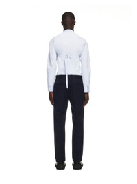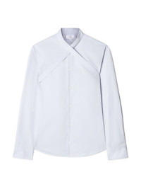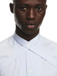 Light blue long sleeves shirt featuring tonal belts. MATERIALS 100% Cotton FITTING Model Alexandre Sewa wears size 48 Height: 5' 11" (182 cm) Chest: 32" (81 cm) Waist: 26" (68 cm)
