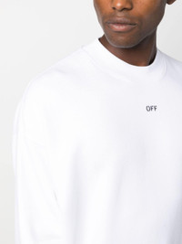 logo-print cotton sweatshirt from OFF-WHITE featuring white, cotton, crew neck, logo print to the front, long sleeves, elasticated cuffs and elasticated hem. Size & Fit Model Measurements: Height: 1.88 m Bust/Chest: 92.0 cm Hips: 92.0 cm Waist: 70.0 cm Model wears size L Fabric and Care Designer Style ID: OMBA054F23FLE0010110 Designer Colour: 0110 WHITE BLACK Composition: Cotton 100% Washing instructions: Machine Wash Made in Portugal