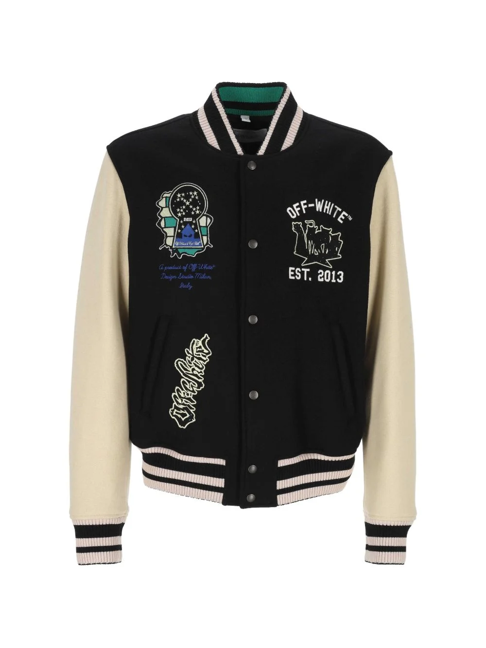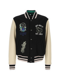 embroidered varsity jacket Highlights - Black - Ribbed trims - Embroidered detailing - Front button fastening - Long sleeves - Straight hem Made in Italy Composition Wool 70%, Polyamide 27%, Polyester 3% Washing instructions Read Manufacturer Guidelines