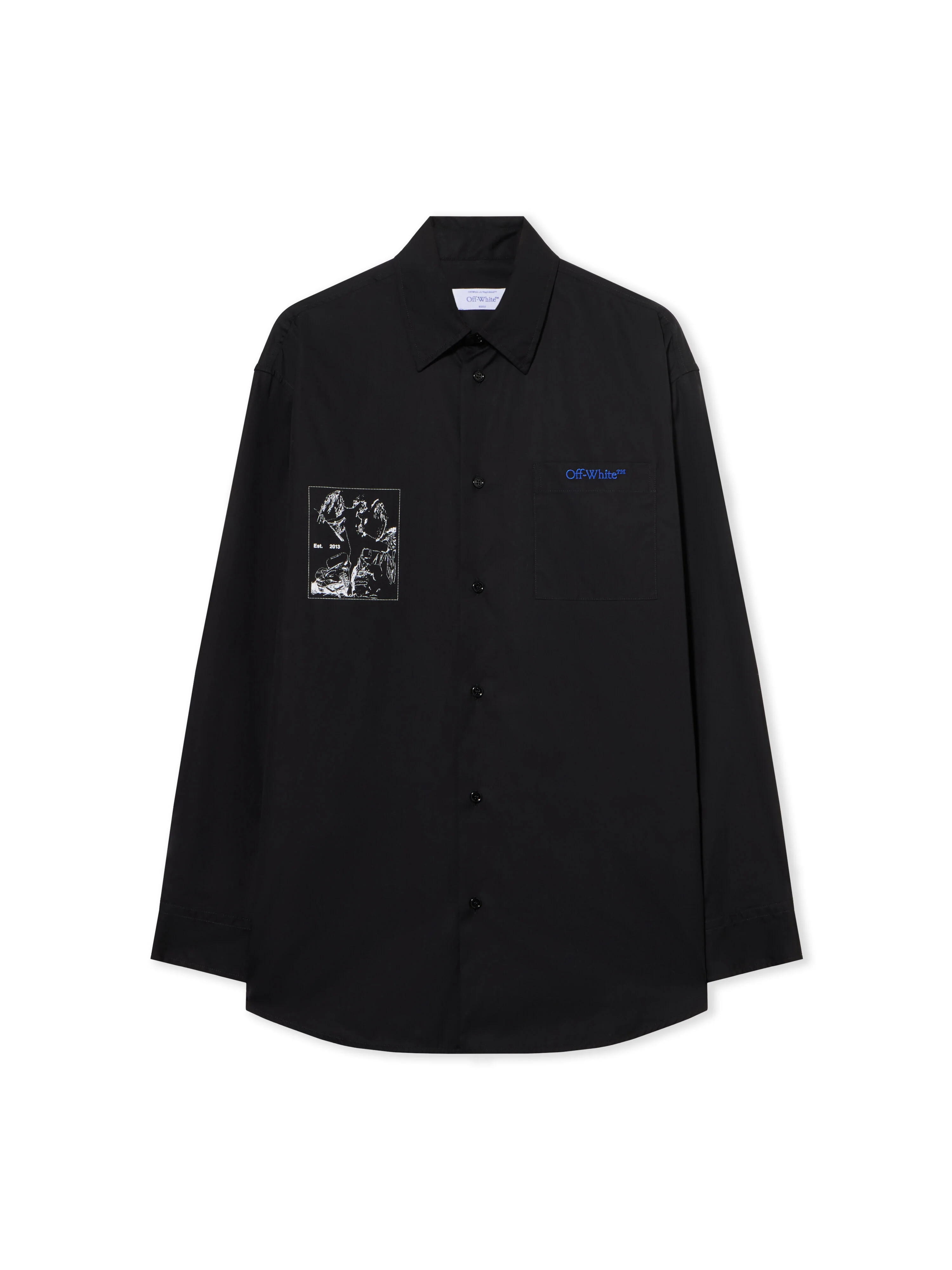 This Off-White™ over shirt merges artistic expression with urban design, featuring a striking back graphic and precise tailoring. - Crafted from premium fabric for a refined finish - Concealed button-down front for a seamless look - Artistic graphic print on rear panel - Signature Off-White™ branding on chest pocket - Classic collar with extended sleeves - Oversized fit for contemporary styling - Made in Italy DETAILS - Material: 100% Cotton - Code: OMGE004F25FAB0031001