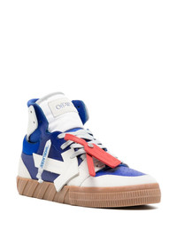 Floating Arrow high-top sneakers Off-White's directional Arrows motif is dissected and applied to these high-top sneakers in a seemingly 'floating' patch to the side. The pair includes a variety of other house codes such as the signature Zip Tie tag and Quote motif printed onto the shoelaces. Highlights - Blue/white - Signature arrows motif - Signature zip tie tag - Signature quote motif - Logo print to the side - Round toe - Perforated toebox - Front lace-up fastening - Padded ankle - Flat rubber sole - Due to the dyeing process used, this product must not come into contact with water. Imported Composition Outer: Fabric 100%, Calf Leather 100% Lining: Fabric 100%, Calf Leather 100% Sole: Rubber 100% SIZE & FIT Measurement HEIGHT 5.11 in(13 cm) Sole height 1.18 in(3 cm)