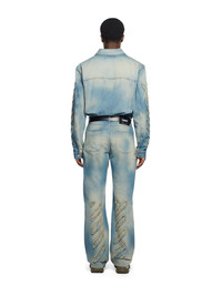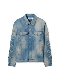 The Diagonal Raw Patch Denim Jacket embodies urban sophistication with its signature distressed detailing and architectural design. Crafted from premium denim, it showcases Off-White™'s distinctive aesthetic. - Classic collar with button fastening - Long sleeves with raw patch detailing - Front flap pockets with button closure - Signature diagonal distressed accents - Back panel with "DENIM" label - Structured silhouette with a tailored fit - Expertly crafted from high-quality denim - Made in Italy DETAILS - Material: 100% Cotton, Lining: 35% Cotton 65% Polyester - Code: OMYE09BF25DEN0014141