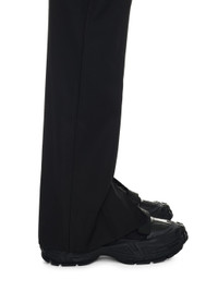 Black glove slip on featuring tonal details. Black and white label at front with black Off-White logo. Tonal laces. Tonal rubber sol. MATERIALS Outer: 25% Polyurethane Outer: 66% Leather Lining: 100% Polyester Outer: 9% Polyester Sole: 100% Rubber FITTING Bust 0cm Height 0cm Hips 0cm Waist 0cm