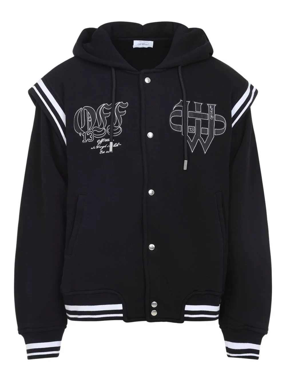 logo-embroidered hooded jacket Highlights - Black - Drawstring hood - Embroidered logo - Button fastening - Striped trims - Raglan sleeves Imported Composition Cotton 100% Washing instructions Read Manufacturer Guidelines