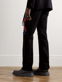 Off-White's trousers are embroidered with a vibrant, graffiti-inspired logo to match the coordinating jacket. They've been tailored in Italy from a black wool-blend and have a neat, slim cut. Size & Fit - Model wears a size larger to achieve a looser fit - Regular-straight leg, mid-rise style - Mid-weight, non-stretchy fabric - Model is shown wearing an IT 48 - Model measures: waist size 29, height 6'2"/ 188cm Details & Care - Black wool-blend - Hook and zip fastening - 72% wool, 27% polyester, 1% acetate - Dry clean