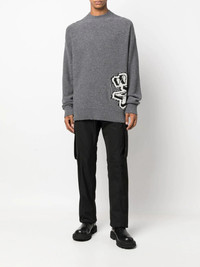 Graffiti chunky-knit jumper Streetwear label Off-White offers its signature effortless style with this chunky-knit jumper for AW22. Imagined in a grey hue, this long-sleeve design is defined by a graffiti print, which highlight's the brand casual and modern ethos. Made in Italy Composition Virgin Wool 100% SIZE & FIT Model measurements Height 6 ft 2 in(1.87 m) Bust/Chest 38.18 in(97 cm) Hips 36.61 in(93 cm) Waist 29.13 in(74 cm) Washing instructions Dry Clean Only