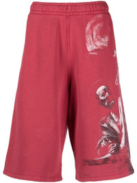 graphic-print track shorts Off-White's collections are underpinned with casual staples, and these shorts continue the theme. Cut from cotton to a relaxed, longline silhouette, they're decorated with graphic print detailing and the signature diagonal stripes on the back. Highlights - Red/grey - Cotton - Graphic print to the front - Graphic print to the rear - Diagonal stripe print - Elasticated waistband - Slip pockets to the sides Imported Composition Cotton 100% SIZE & FIT Model measurements Height 6 ft 2 in(1.87 m) Bust/Chest 36.61 in(93 cm) Hips 35.03 in(89 cm) Waist 27.95 in(71 cm) FittingInformation Designed with a wide leg, offering a loose and roomy fit The partially elasticated waistband offers increased movement and comfort at the waist Made from a midweight non-stretch fabric, this piece offers minimal elasticity when worn This piece fits true to size – take your usual size Washing instructions Machine Wash