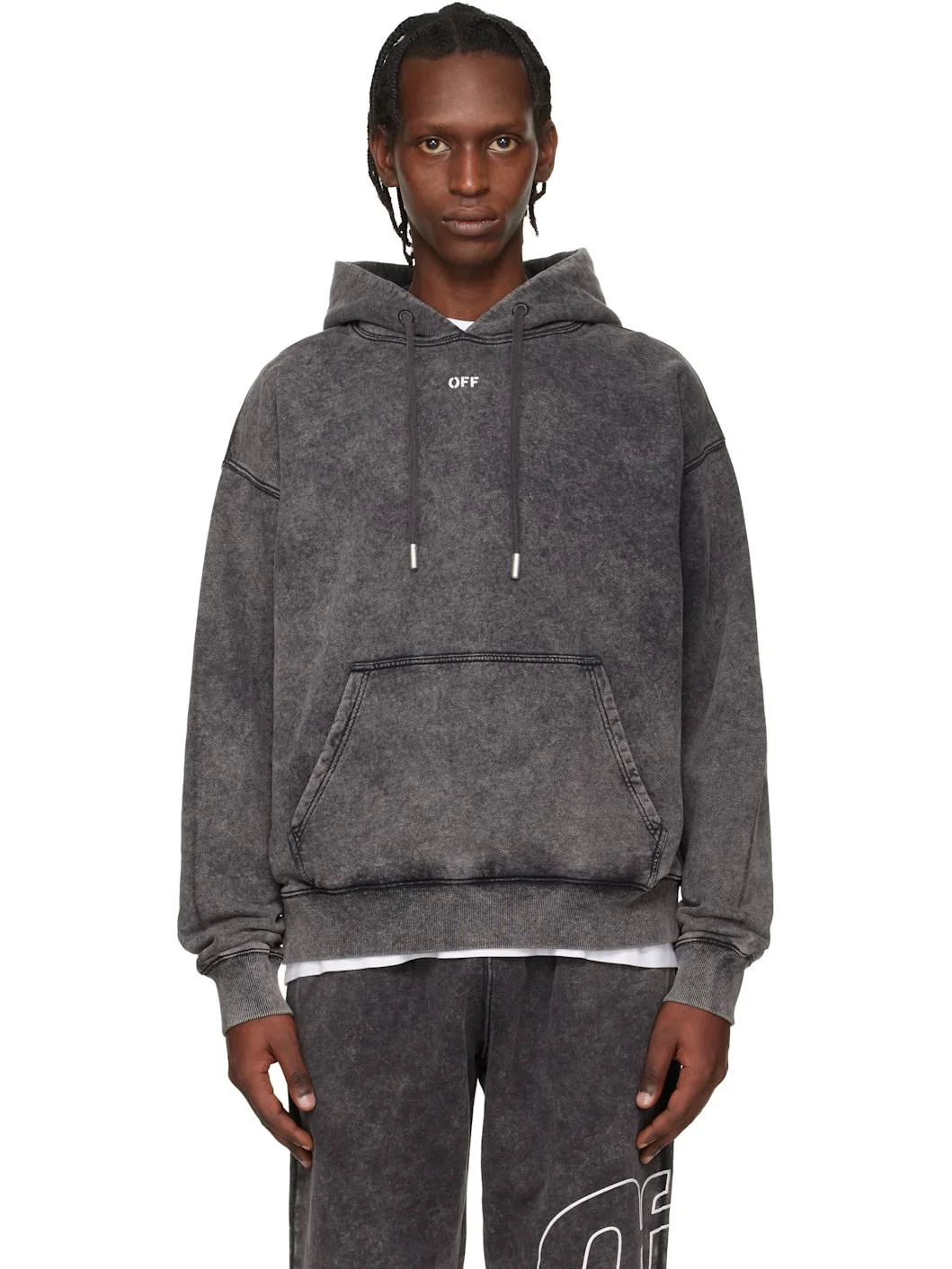 Garment-dyed French terry hoodie. · Discoloration throughout · Drawstring at hood · Logo printed at chest · Kangaroo pocket at waist · Rib-knit hem and cuffs · Vented side seams · Dropped shoulders Supplier color: Vintage Black Body: 100% cotton. Trim: 95% cotton, 5% elastane. Made in Portugal 252607M202027