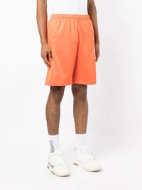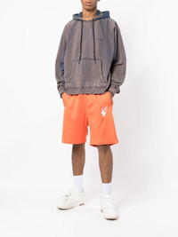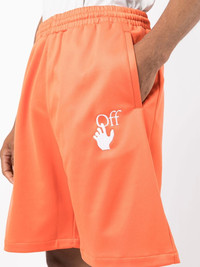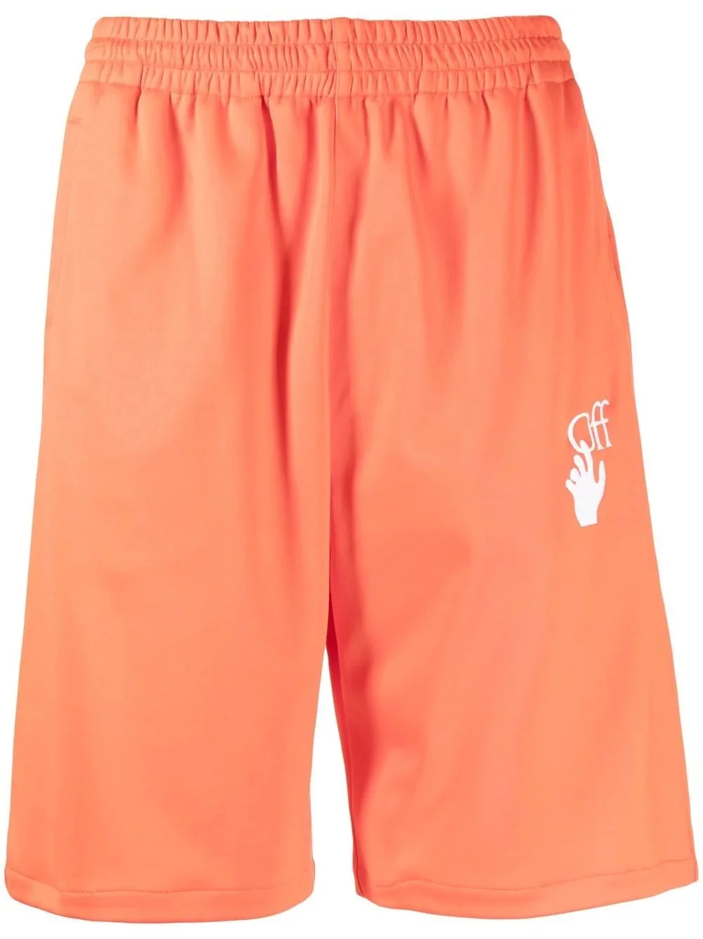 Hands Off knee-length shorts Hands Off knee-length shorts from OFF-WHITE featuring orange, cotton blend, signature Hands Off logo, elasticated drawstring waistband, slip pockets to the sides and knee-length. Made in Italy Composition Body: Polyamide 58%, Cotton 38%, Elastane 4% SIZE & FIT Model measurements Height 6 ft 3 in(1.9 m) Bust/Chest 35.03 in(89 cm) Hips 36.61 in(93 cm) Waist 29.13 in(74 cm) FittingInformation This piece fits true to size. We recommend you get your regular size Designed for a slim fit at the waist and loose over the leg Made with a mid-weight stretch fabric Washing instructions Machine Wash