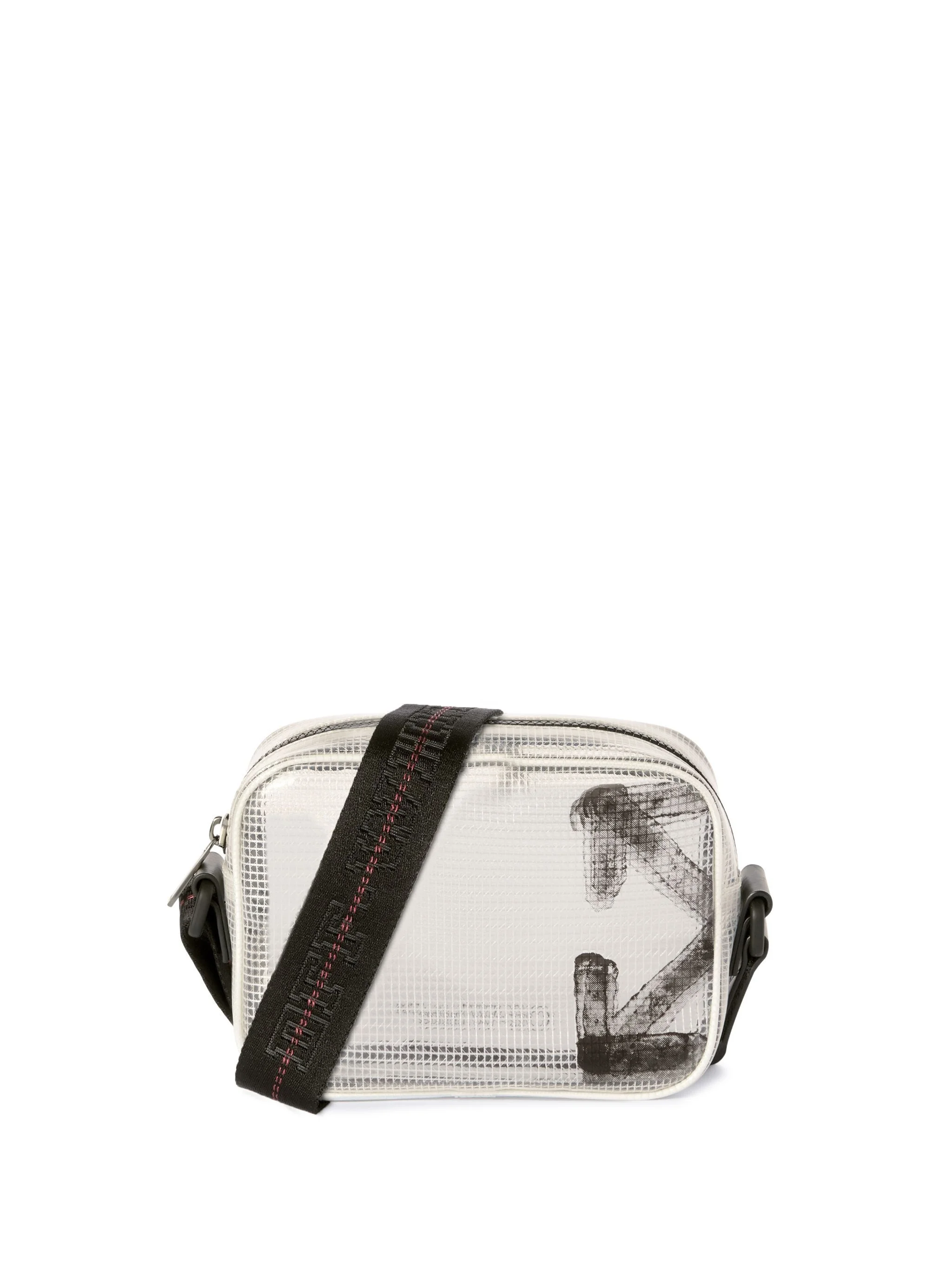 This camera bag is crafted from transparent ripstop and features a large cropped arrow and an adjustable shoulder strap with woven logos. Made in Italy. DETAILS - NALLA WEARS SIZE O/S HEIGHT: 6' (184 CM) BUST: 35” (89 CM) WAIST: 27“ (70 CM) HIPS: 35” (89 CM) - Material:OUTER:Calf Leather 100%, OUTER:Polyester 5%, OUTER:Polyurethane 95% - Code: OMNQ09AS25FAB0017910