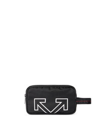 Part of the new Heritage line, this toiletry pouch is crafted from nylon with leather detailing and a cropped arrow logo on both sides. It features a tape handle and interior card pocket. Made in Italy. DETAILS - Weight: 154 g Measurements: Height 13 Width 29 Depth 6,5 cm - Material:OUTER:Calf Leather 100%, OUTER:Polyamide 100%, LINING:Polyester 100% - Code: OMNS02CC99FAB0011001