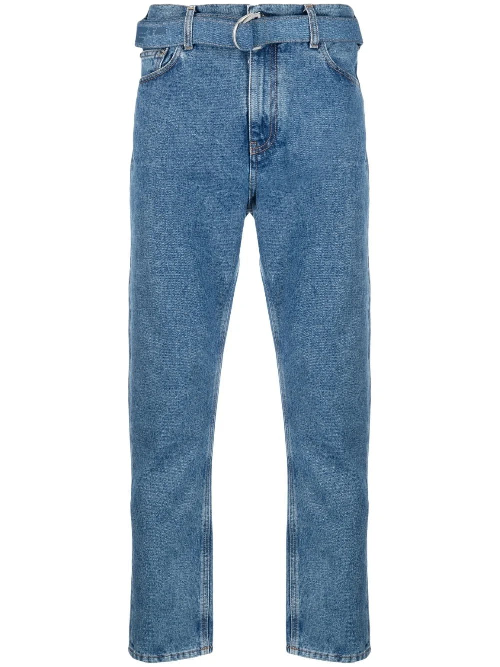 Indust slim-fit jeans Exhibiting Off-White's distinctive graphic-led style, these jeans are enhanced with a logo-print belt, drawing inspiration from the brand's iconic Industrial strap. Highlights - Blue - Cotton - Logo patch to the rear - Slim cut - Drop crotch - Classic five pockets - Belt loops - Belted waist - Signature industrial strap - Front button and zip fastening Made in Italy Composition Outer: Organic Cotton 100% Lining: Organic Cotton 100% SIZE & FIT Model measurements Height 6 ft 2 in(1.89 m) Bust/Chest 37.4 in(95 cm) Hips 35.03 in(89 cm) Waist 27.95 in(71 cm) FittingInformation Designed for a slim fit, these jeans offer a comfortable fit that sits just away from the leg The belt offers adjustability for fitted preferences Sturdy and hard-wearing, this denim piece offers no stretch This piece fits true to size – take your usual size Washing instructions Machine Wash