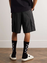 As its name suggests, Off-White's aesthetic channels a sense of 'in betweenness' and these 'Indust' wide-leg shorts tread the line between utilitarian and street. Cut from shell, they're equipped with sizeable cargo pockets and an adjustable belt detailed with a brand decal. Size & Fit - Fits true to size, however those who are between sizes should take the smaller size - The model is wearing a size larger to achieve a looser fit - Wide leg, low-crotch style - These shorts are adjustable at the waist - Mid-weight, non-stretchy fabric - Model wears a M - Model measures: waist size 30, height 6'1"/ 185cm Details & Care - Black shell - 70% polyester, 30% polyamide - Dry clean