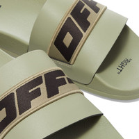 Off-White showcases its ability to turn a classic design into an iconic staple, here with these green sliders. They’re made from comfy and durable rubber and feature fabric detailing across the band- which has the label’s printed name- and the iconic index finger icon worked into. Whether you’re by the pool or hitting the city streets, these versatile slides are your go-to choice of footwear. - 90% Nylon, 10% PU - Moulded Footbed - Printed Branding - Made in Italy