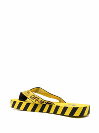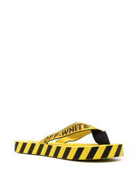 Yellow/black/red Industrial-strap flip flops from OFF-WHITE featuring signature Diag-stripe print, open toe, round toe, signature Industrial strap, slip-on style, branded insole and chunky rubber sole. Highlights - Yellow/black/red - Signature diag-stripe print - Open toe - Round toe - Signature industrial strap - Slip-on style - Branded insole - Chunky rubber sole Imported Composition sole: Rubber 100% lining: Fabric 100% outer: Fabric 100% Product measurements for size: 44 (IT) Sole height: 2.5 cm (1 in)