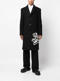OFF-WHITE intarsia-graffiti logo single-breasted coat Streetwear label Off-White adds a signature irreverent edge to formal tailoring with pieces such as this coat. Crafted from a wool blend with a brushed effect, the buttoned outerwear is unexpectedly adorned with the brand's signature graffiti logo motif in an intarsia effect. Highlights - black/white - wool blend - intarsia-knit logo - graffiti print - notched lapels - front button fastening - long sleeves - straight hem Composition Outer: Wool 84%, Polyamide 16% Lining: Viscose 52%, Cupro 48% Fitting information This piece fits true to size. We recommend you get your regular size Cut for a loose fit Made with a mid-weight non-stretch fabric Model measurements Height 1.9 m Bust/Chest 97 cm Hips 96 cm Waist 83 cm The model is 1.9 m wearing size M.