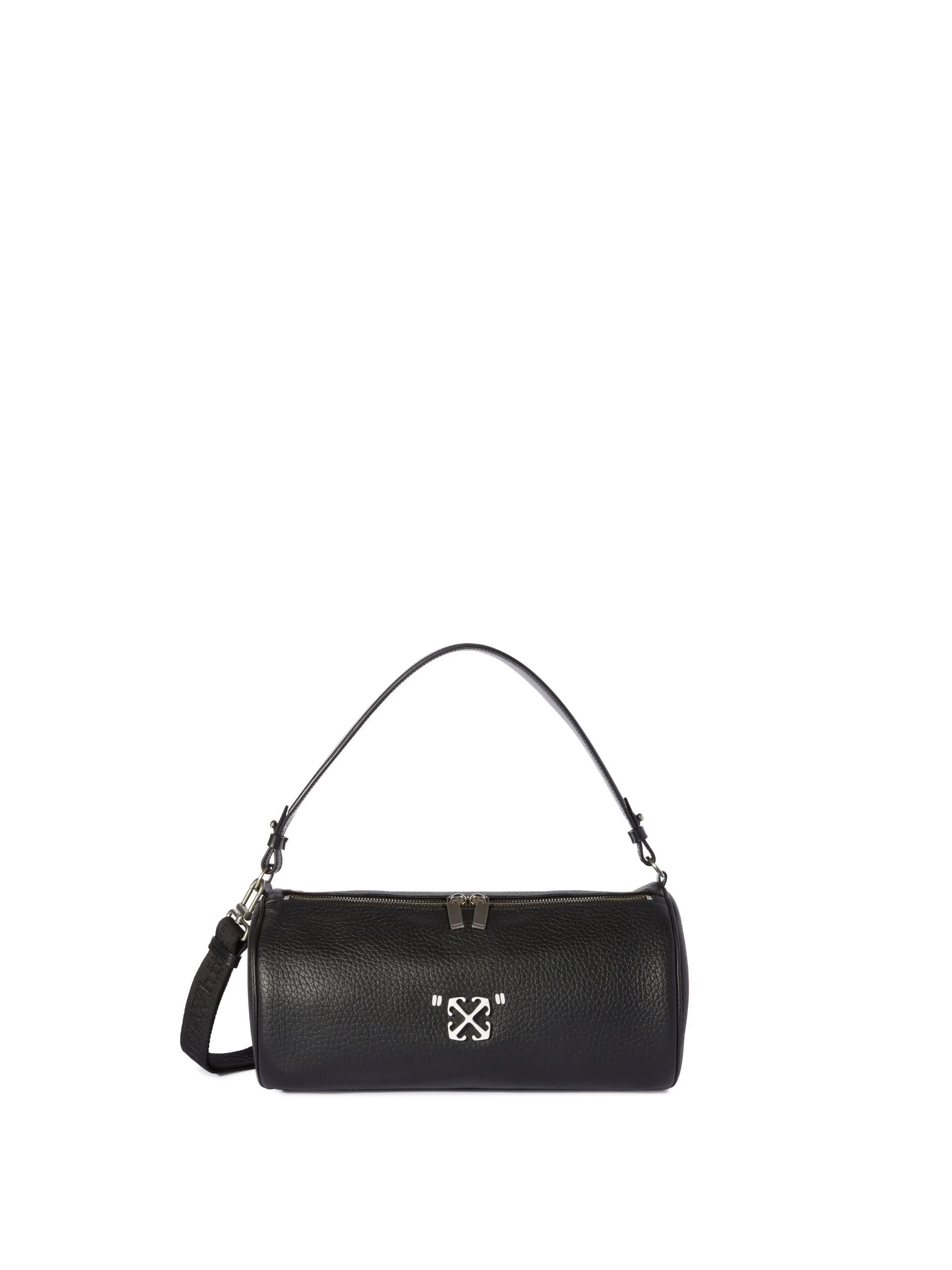 This small barrel-shaped gym bag is crafted from 100% leather with an arrow plaque and quotes. It features a short top handle and removable longer strap with woven bookish logos. Made in Italy. DETAILS - Weight: 900 g Measurements: Height 17 cm;Width 34cm;Depth 17 cm - Material:OUTER:Calf Leather 100%, LINING:Polyester 100% - Code: OMNN079C99LEA0011001