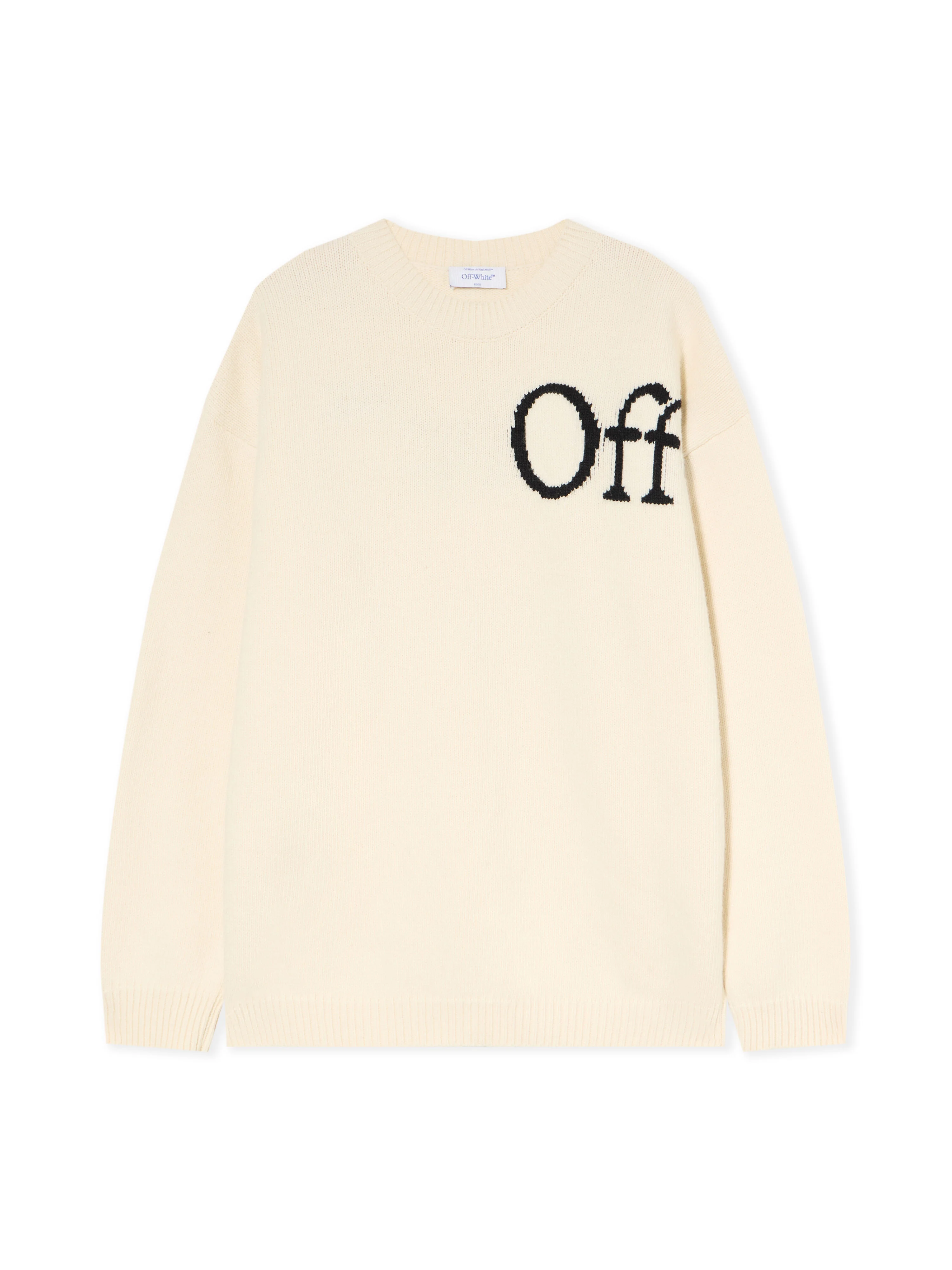 The Bookish Knit Crewneck Sweater showcases a minimalist design with bold logo detailing, crafted for a refined silhouette and ultimate comfort. - Knitted crewneck sweater - Prominent front and back logo intarsia - Ribbed neckline, cuffs, and hem - Soft texture with a structured fit - Long sleeves for added warmth - Made in Italy DETAILS - Material: 100% Cotton - Code: OMHE20QF25KNI0010B10