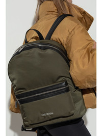 logo-embroidered backpack Highlights - Olive green - Leather trim - Top zip fastening - Single top handle - Two padded adjustable shoulder straps - Front zip-fastening pocket - Main compartment - Internal slip pocket - Internal logo patch Made in Italy Composition Outer: Nylon 100%, Calf Leather 100%