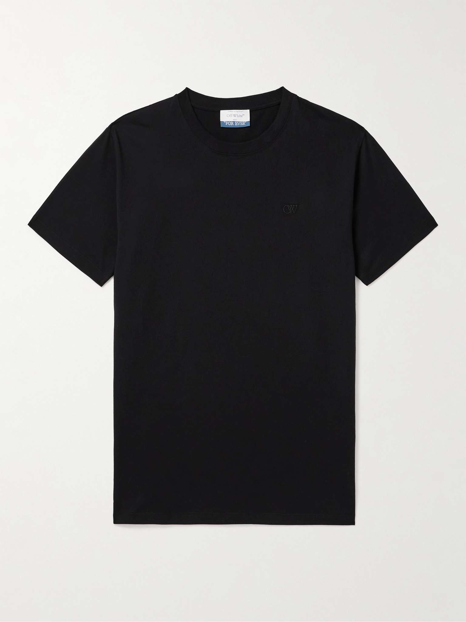 Off-White's T-shirt is the ideal foundation for any casual outfit. Cut from cotton-jersey, it has a smooth and comfortable handle and a subtle logo embroidered at the chest. Try yours under one of the label's varsity jackets in our edit. Size & Fit - Model wears a size larger to achieve a looser fit - Mid-weight, slightly stretchy fabric - Model is shown wearing a M - Model measures: chest 36"/ 92cm, height 6'0"/ 183cm Details & Care - Black cotton-jersey - 100% cotton - Machine wash