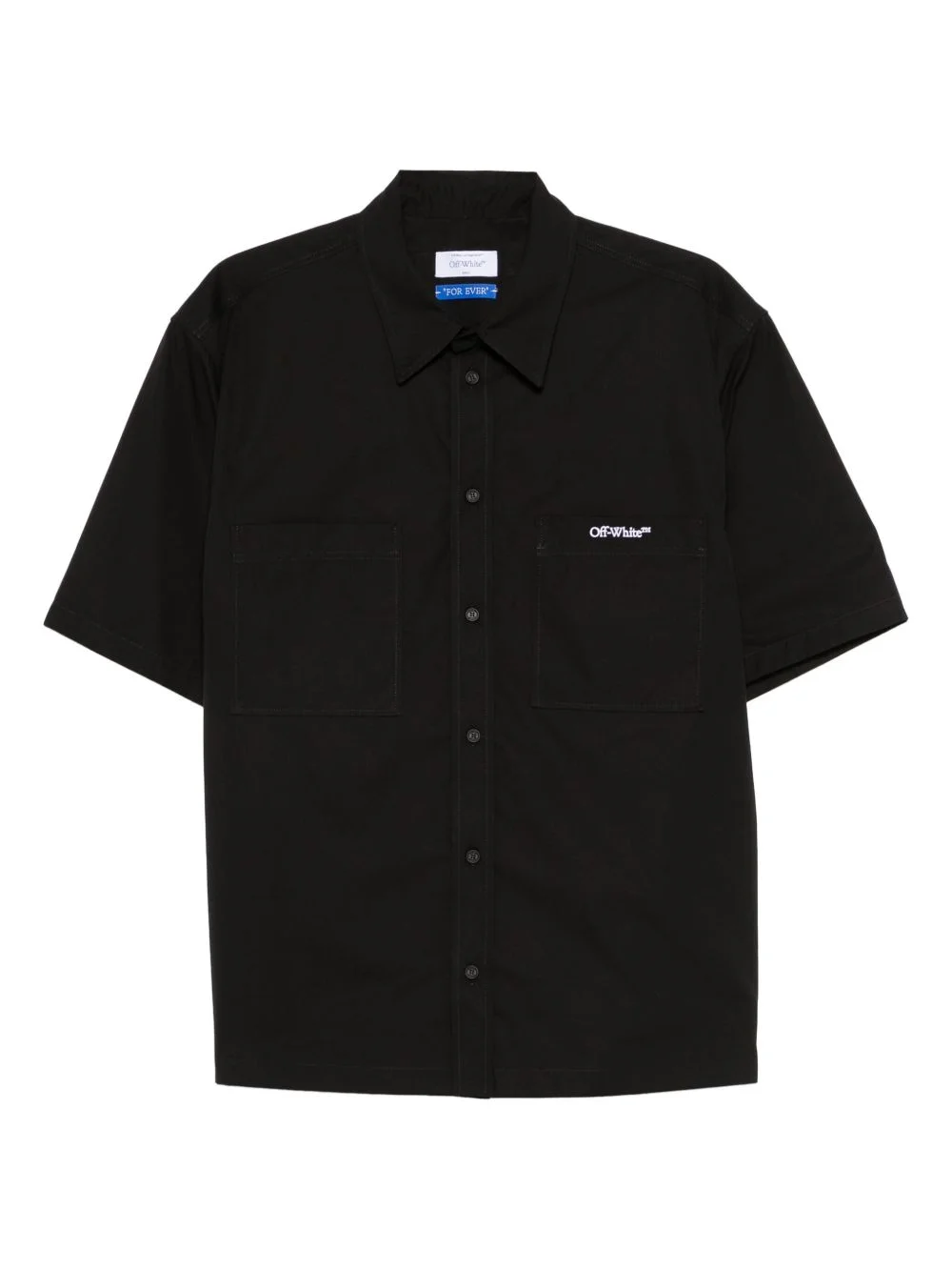 logo-embroidered shirt Highlights - Black - Point collar - Front button fastening - Short sleeves - Chest patch pocket Made in Italy Composition Cotton 100% SIZE & FIT Model measurements Height 6 ft 2 in(1.87 m) Bust/Chest 36.41 in(92.5 cm) Hips 37 in(94 cm) Waist 29.52 in(75 cm)