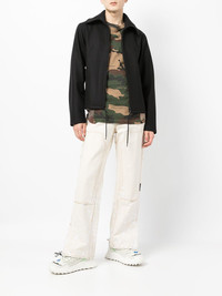 logo-embroidered spread-collar jacket Off-White takes an unusual pared-back approach to branding with this spread-collar jacket. Presented in a black colourway, this piece is detailed with a tonal logo embroidered Made in Italy Composition Wool 70%, Polyamide 28%, Elastane 2% SIZE & FIT Model measurements Height 6 ft 2 in(1.87 m) Bust/Chest 35.43 in(90 cm) Hips 36.41 in(92.5 cm) Waist 27.55 in(70 cm) FittingInformation This piece fits true to size. We recommend you get your regular size Cut for a loose fit Made with a mid-weight fabric Washing instructions Dry Clean Only