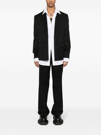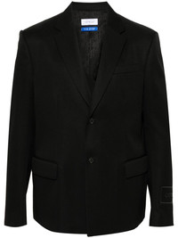 logo-embroidered wool blazer This black Off-White blazer is a classic style with signature inventive branding. It’s tailored from wool to a single-breasted silhouette and embroidered with a logo at the sleeve that mimics the look of traditional detachable patches. Highlights - Black - Virgin wool - Notched lapels - Long sleeves with buttoned cuffs - Embroidered logo at the sleeve - Chest welt pocket - Two front flap pockets - Internal slip pocket - Internal detachable strap - Logo-jacquard lining - Front button fastening Made in Italy Composition Outer: Virgin Wool 100% Lining: Cupro 52%, Viscose 48%