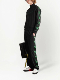 logo-embroidered zip-up jacket black neon green cotton blend high neck front zip fastening embroidered logo at the chest two side slit pockets long sleeves graphic-print sleeves straight hem Made in Italy Composition Polyamide 58%, Cotton 38%, Elastane 4%