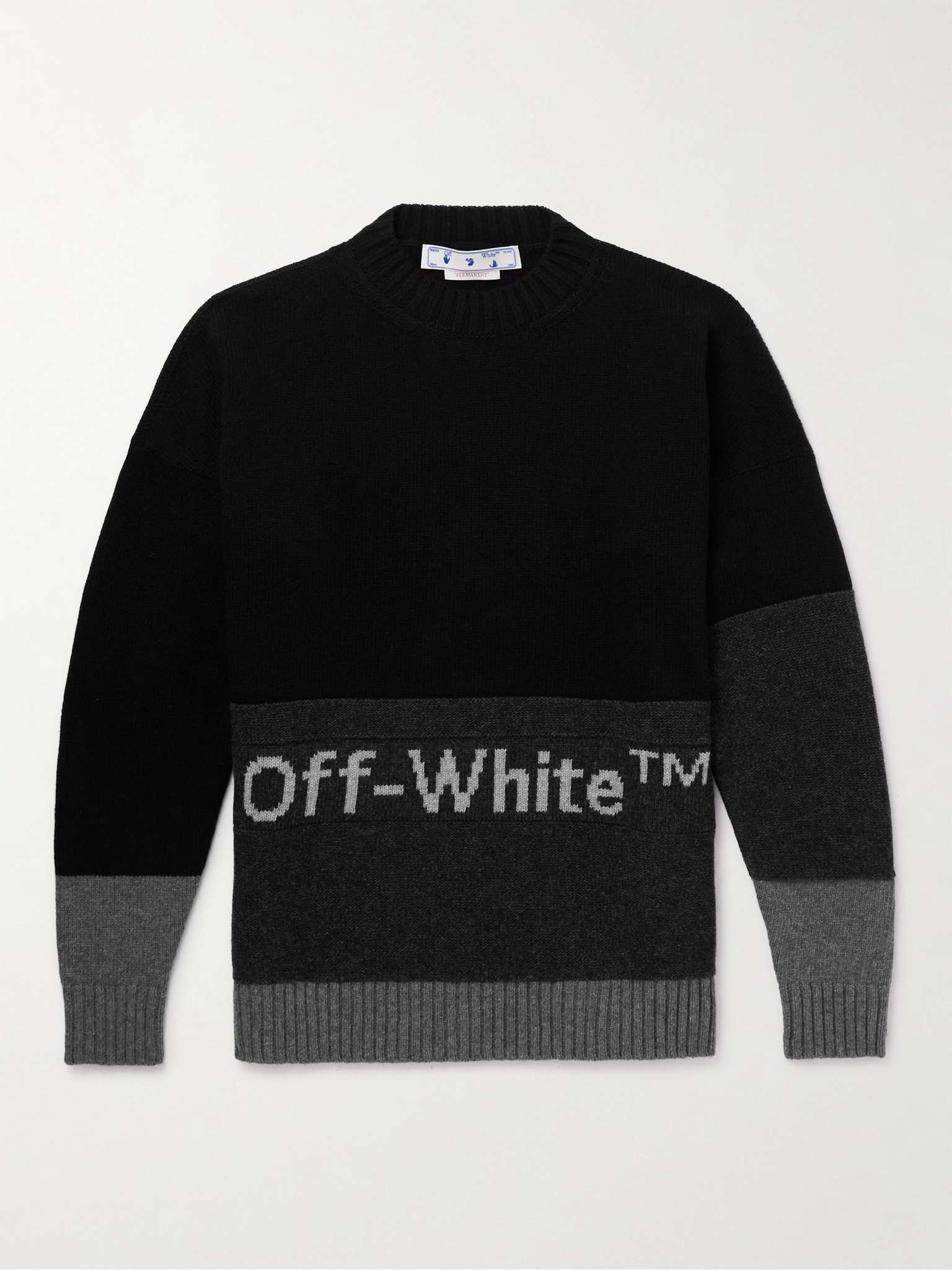 Off-White's colour-block sweater features the label's highly recognisable Helvetica logo intarsia-knitted in tonal-grey threads. It's made from soft wool and designed for a relaxed fit. Size & Fit - Fits true to size. Take your normal size - The model is wearing a size larger to achieve a looser fit - This sweater is designed for a relaxed cut - Weighted knit - Model wears a L - Model measures: chest 38"/ 96cm, height 6'1"/ 185cm Details & Care - Black and tonal-grey wool - 100% wool - Dry clean - Made in Italy