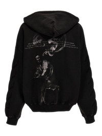 Matthew cotton hoodie A graffiti-inspired depiction of Saint Matthew adorns the rear of this faded black hooded from Off-White, cut from soft cotton jersey in Portugal to a relaxed silhouette. It's part of the brand's Wardrobe collection, a 'curated selection of staples' and discreetly adorned at the front with a contrasting white logo. Highlights - Black - Cotton - Jersey texture - Logo stamp to the front - Logo stamp to the front - Drawstring hood - Drop shoulder - Long sleeves - Ribbed cuffs and hem - Front pouch pocket - Straight hem - French terry lining Imported Composition Lining: Cotton 95%, Elastane 5% Outer: Cotton 100% Washing instructions Read Manufacturer Guidelines