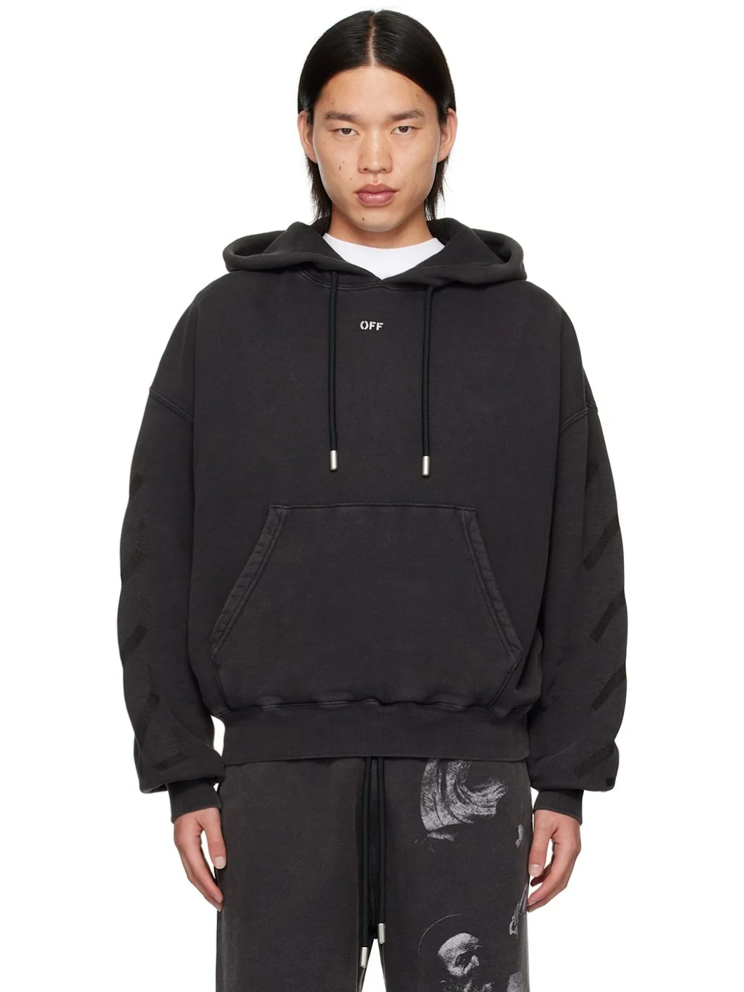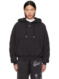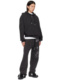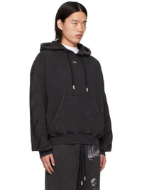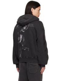 French terry hoodie. Fading throughout. · Drawstring at hood · Logo printed at chest · Kangaroo pocket · Rib knit hem and cuffs · Dropped shoulders · Logo graphic embroidered at sleeves · Graphic and text printed at back · Logo-engraved silver-tone hardware Supplier color: Black/Grey