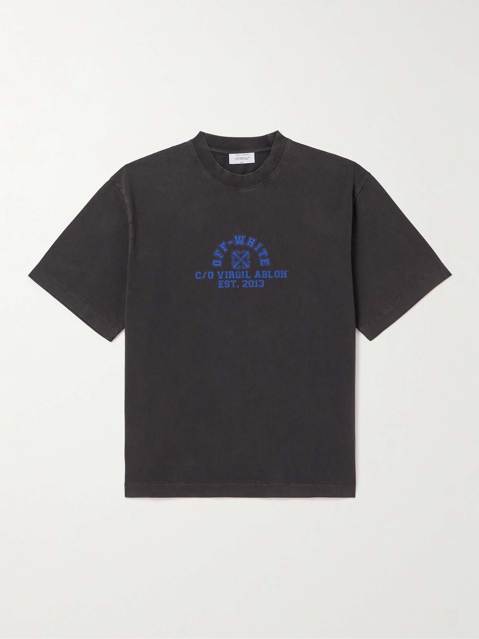 This crew-neck T-shirt may be a staple in the truest sense, but, being the work of Off-White, it's far from your average. Riffing on skatewear, it's cut from soft cotton-jersey that's been washed for a lived-in appearance. The front is printed with a motif that marks the year the label began taking over our wardrobes. Size & Fit - Model wears a size larger to achieve a looser fit - Mid-weight, slightly stretchy fabric - Model is shown wearing a M - Model measures: chest 36"/ 92cm, height 6'0"/ 183cm Details & Care - Black and blue cotton-jersey - 100% cotton - Machine wash