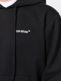 Black cotton logo-embroidered cotton hoodie from OFF-WHITE featuring embroidered logo at the chest, drop shoulder, long sleeves, drawstring hood, front pouch pocket and ribbed edge. Conscious: This item is made from at least 50% organic materials. Size & Fit Model Measurements: Height: 1.87 m Bust/Chest: 94.0 cm Hips: 89.0 cm Waist: 73.0 cm Model wears size M Fabric and Care Designer Style ID: OMBB097C99FLE0071001 Designer Colour: 1001 BLACK WHITE Composition: Cotton 100%, Polyester 100% Washing instructions: Machine Wash Made in Portugal
