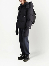 OFF-WHITE logo-print padded jacket black feather down padded design logo print to the front detachable hood front zip fastening long sleeves Composition Outer: Polyester 100% Lining: Polyester 100% Brand style ID: OMED045F22FAB0011001
