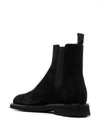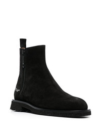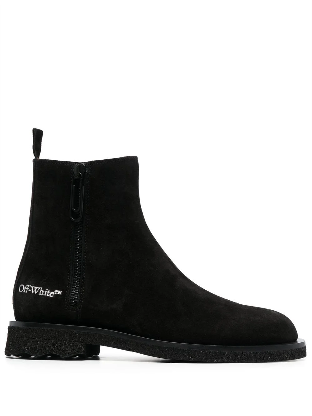 logo-print ankle boots black calf suede/calf leather logo print to the side short side zip fastening pull-tab at the heel ankle-length round toe flat sole Made in Italy Composition Lining: Calf Leather 100% Outer: Calf Suede 100% Sole: Rubber 100%