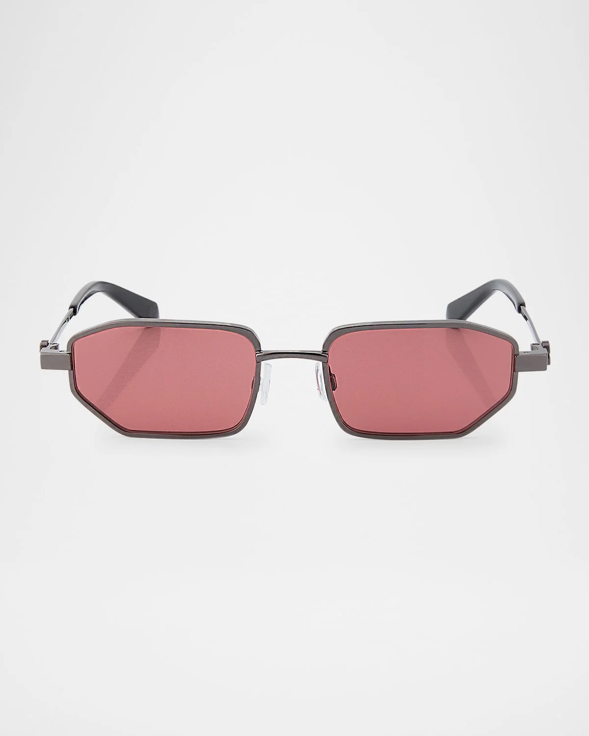 - Off-White "Loa" rectangle sunglasses defined by geometric metal frames - Lens/bridge/temple (in mm): - 53 - 19 - 145 - Solid-color lenses - Adjustable nose pads - Arrows motif on the temples - Thin arms - Curved, capped temple tips - Metal/plastic - 100% UVA/UVB protection - Made in Italy - Proposition 65 warning for California residents