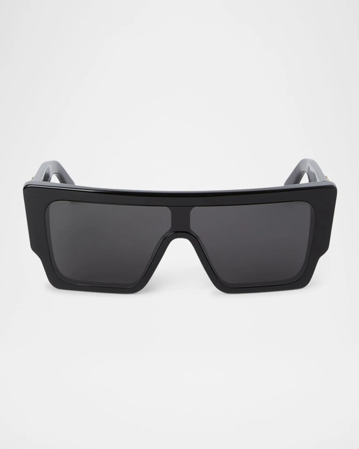 - Off-White "Marion" rectangle shield sunglasses in acetate - Lens/bridge/temple (in mm): - 133 - 0 - 145 - Solid-color lens - Saddle nose bridge - Arrows hardware on the temples - Thick, tapered arms - Curved temple tips - Acetate - 100% UVA/UVB protection - Made in Italy - Proposition 65 warning for California residents