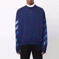 Men's OFF-WHITE FW21 Rubber Arrow Geometry Pattern Round Neck Long Sleeves Loose Fit Blue OMBA054F21