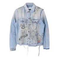 Men's Off-White Graffiti Denim Blue Jacket OMYE049F193860441428