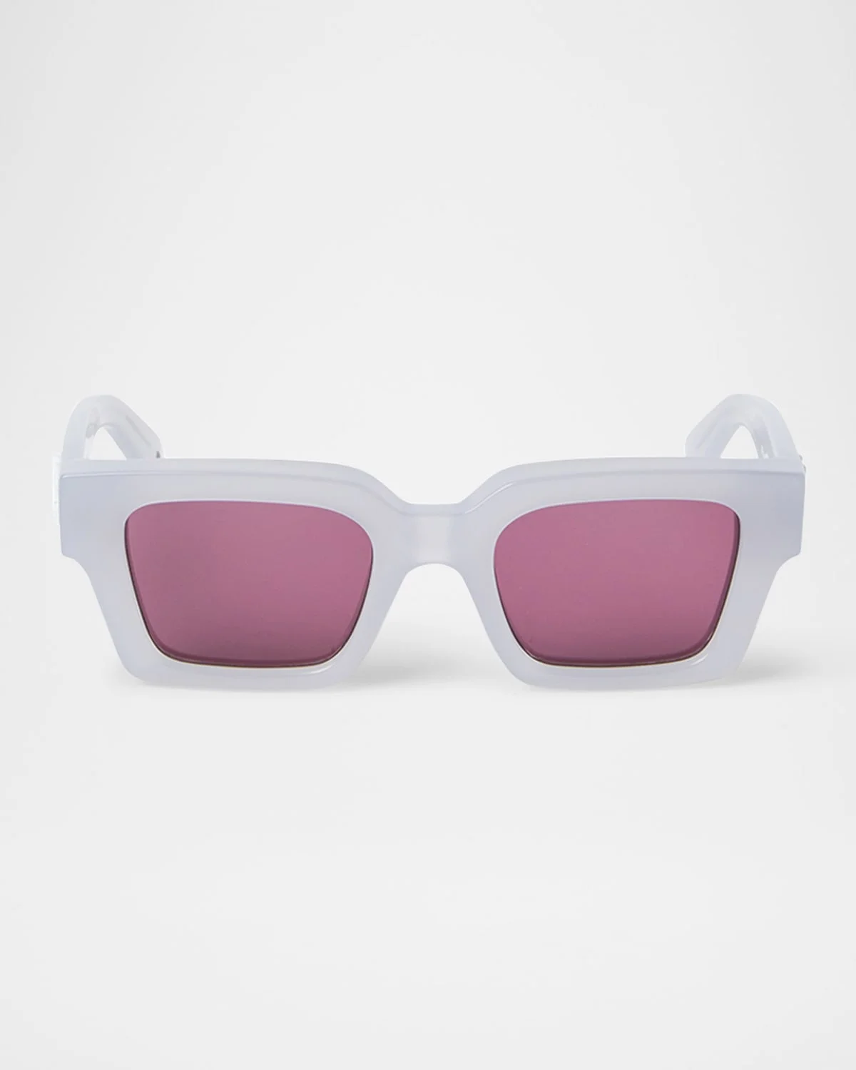 - Off-White "Virgil" square sunglasses in acetate - Lens/bridge/temple (in mm): - 53 - 22 - 145 - Solid-color lenses - Saddle nose bridge - Arrows hardware on the temples - Tapered arms - Exposed metal corewire - Curved temple tips - Acetate - 100% UVA/UVB protection - Made in Italy - Proposition 65 warning for California residents