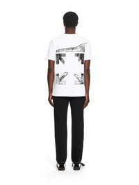 The Metal Arrow Slim T-shirt features a screen print inspired by damaged-by-weather metal foils and rendered with silver ink, a direct reference to urban outskirts. - Slim fit - Metallic arrow graphic on the back - Short-sleeved DETAILS - Fabric: 100% Cotton - Code: 44MAA027S26J001100