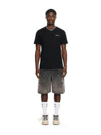 The Metal Arrow Slim T-shirt features a screen print inspired by damaged-by-weather metal foils and rendered with silver ink, a direct reference to raw urban outskirts. - Slim fit - Metallic arrow graphic on the back - Short-sleeved DETAILS - Fabric: 100% Cotton - Code: 44MAA027S26J001001