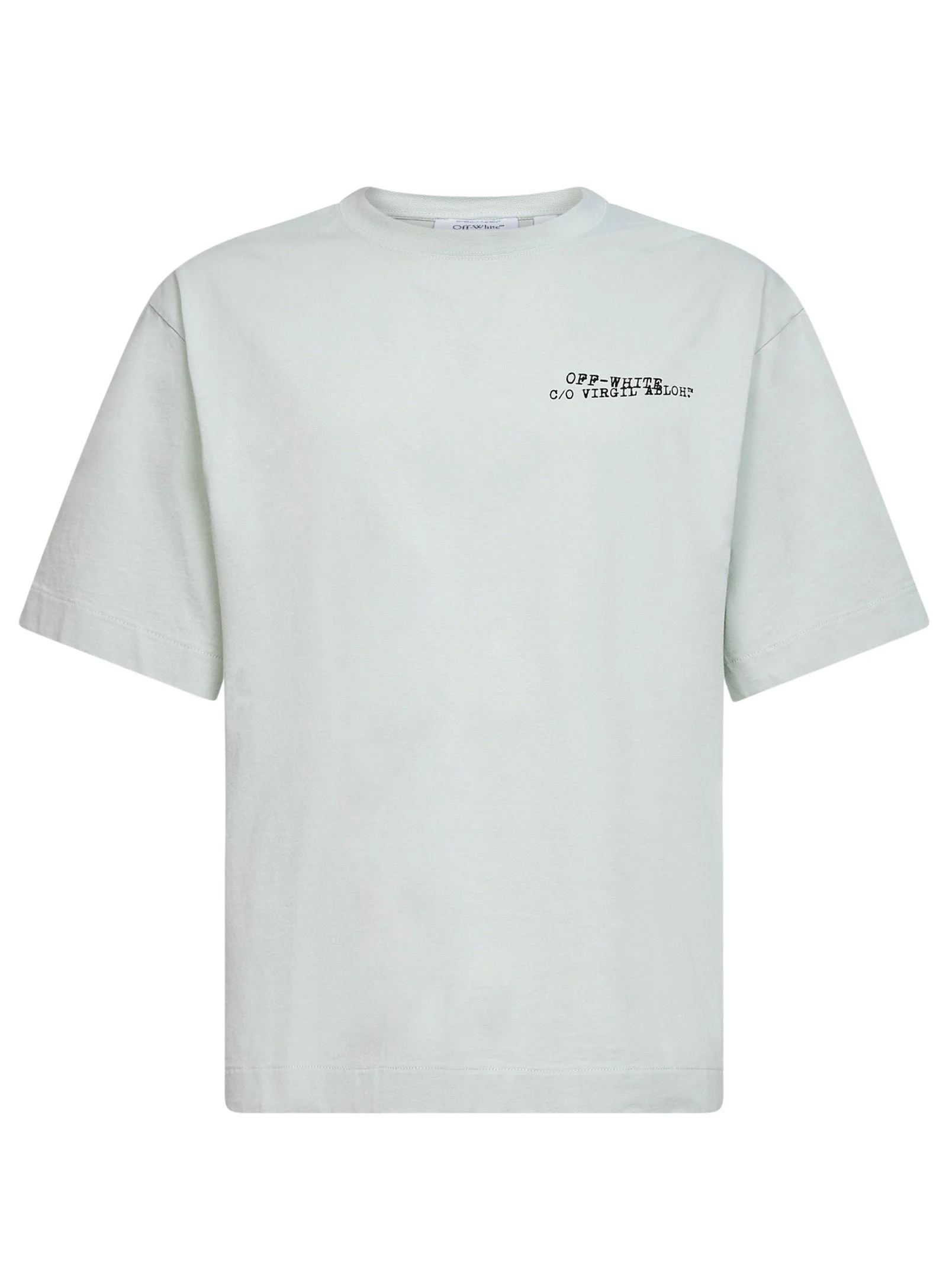 - Ribbed crewneck - Short sleeves, soft shoulders - Contrasting lettering at chest - Contrasting type arrow artwork at back - Straight hem - Skate fit - Mint color - 100% cotton - Made in portugal Natural (Veg): Cotton100 % Made in: Portogallo Season: P26 OMAA120S26JER00S-3030