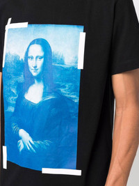 OFF-WHITE Monalisa slim-cut T-shirt Off-White pairs a slim-cut design with the Monalisa print on this T-shirt. This creates a casual and eye-catching look that speaks to the brand's creative approach. Highlights - black/blue - cotton - graphic print to the front - logo print to the rear - crew neck - short sleeves - straight hem Composition Cotton 100% Washing instructions Machine Wash Brand style ID: OMAA027C99JER0061045 Wearing The model is 1.86 m wearing size M