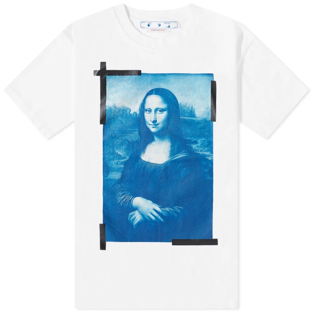 Made in Portugal from pure cotton, this Off-White tee has a slim fit that’s perfect for any casual look. Its crisp white build is detailed with Leonardo da Vinci’s iconic Mona Lisa painting printed on the front. - 100% Cotton - Slim Fit - Ribbed Crewneck - Printed Branding - Made in Portugal