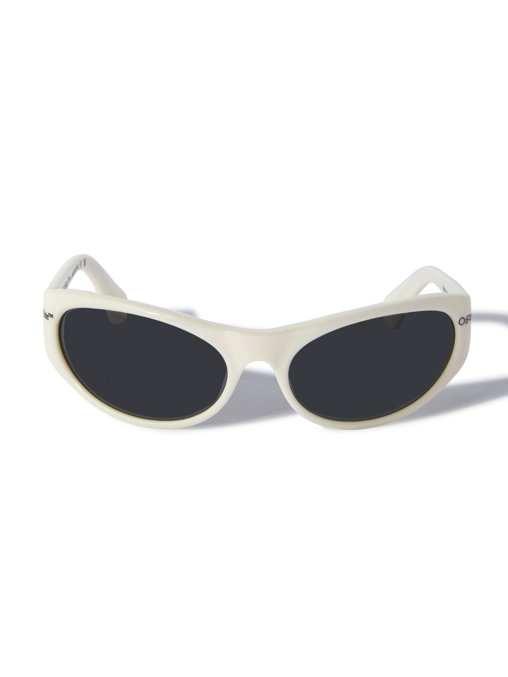 Napoli round-frame sunglasses from OFF-WHITE featuring ivory white, acetate, round frame, grey tinted lenses, logo print to the front and curved tips. These glasses come with a protective case.. MATERIALS 100% Acetate FITTING Bust 0cm Height 0cm Hips 0cm Waist 0cm