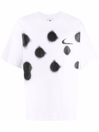 ISS cotton T-shirt As part of Nike's seasonal collection with Off-White inspired by archive sportswear, this ISS T-shirt is crafted in a lightweight cotton fabrication. Showcasing updated Swoosh detailing at the chest and to the rear, the clean white design is punctuated with black spray paint detailing for a street-style touch. Imported Composition Cotton 100% SIZE & FIT Model measurements Height 6 ft 2 in(1.89 m) Bust/Chest 35.43 in(90 cm) Hips 36.61 in(93 cm) Waist 28.74 in(73 cm) Washing instructions Machine Wash
