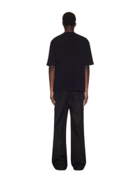 Black cargo pants featuring flat pockets and details. Two sides pockets. Relaxed fit. MATERIALS 100% Polyamide FITTING Model Alexandre Sewa wears size M Height: 5' 11" (182 cm) Chest: 32" (81 cm) Waist: 26" (68 cm)