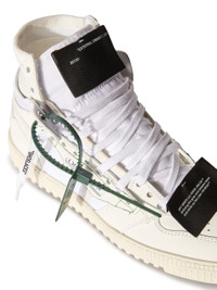 High top "Off-Court" 3.0 sneakers in white with Off-White™ logo on one side. Black labels detailing. White rubber sole. White lace-up closure. MATERIALS Outer: 30% Cotton Outer: 40% Calf Leather Lining: 100% Calf Leather Outer: 20% Polyamide Outer: 9% Polyester Outer: 1% Spandex/Elastane Sole: 100% Rubber FITTING Bust 0cm Height 0cm Hips 0cm Waist 0cm