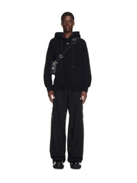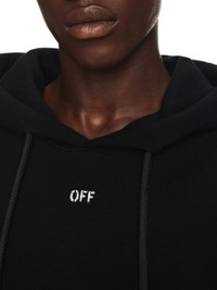 Black Hoodie featuring white Off-White logo at front. Elasticized cuffs and hem. Kanagaroo pocket at front. Skate fit. MATERIALS 100% Cotton FITTING Model Min Jun wears size M Height 6' 3" (190 cm) Chest: 35" (90 cm) Waist: 27" (70 cm)